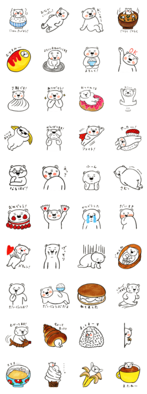 絵本にもなったしろくまのスタンプです。オッサンみたいな絵姿ですが妙に癒されます。