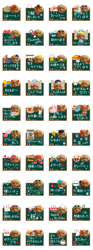 トイプーらっちゃんが丁寧語を黒板で可愛く表現。 <よく使う><あいさつ><あいづち>