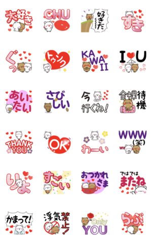 アモーレ♡くまくま第14弾。使いやすいデカ文字バージョン。彼氏、彼女、奥さん、旦那さんに、でっかいラブを伝えてね!