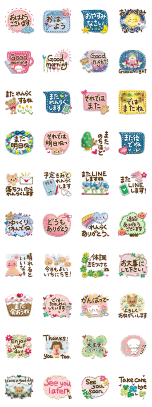 朝と、会話の最後によく使う言葉を集めた、とっても便利なセットです。海外のご友人やご家族へ送れる英語のメッセージ入りです♡