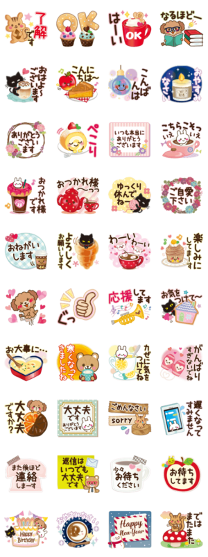 このスタンプどれも貰ったら、確実に甘くて優しい気持ちになれると思います。私も誰かに送ってもらいたいです。