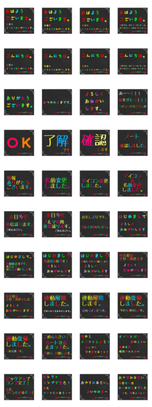 黒板シリーズのブラックボードバージョン!グルチャ用スタンプ![Yuchi]専用!メンバー様向きです。グルチャ報告や挨拶用に!フォントは2種混合です。