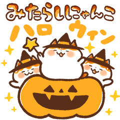 みたらしにゃんこスタンプがハロウィン仕様になって登場! おばけになっても、もっちもっちは変わらず? トリックオアトリートでお菓子もゲット♪きゃらきゃらマキアート より発売