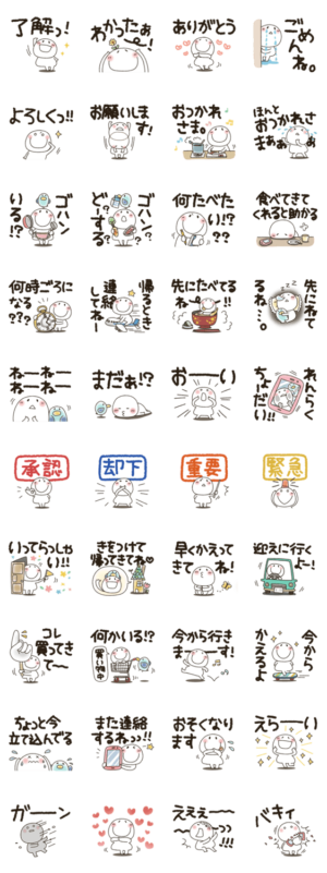 まるぴシリーズ32弾です。ファミリー同士で主婦、奥さん、妻が旦那さん、夫、家族に送りやすい言葉を集めました。夕飯の相談や帰宅時間確認など。かなぴ より発売