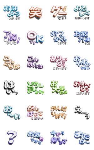 シンプル、よく使う言葉、敬語、基本、可愛すぎない、日常をテーマに誰にでも使いやすく、見やすい文字だけの動くスタンプです。