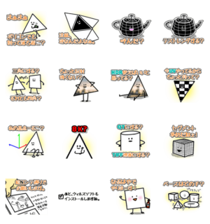 三角ポリゴン君とゆかいなプリミティブたち スタンプ画像一覧