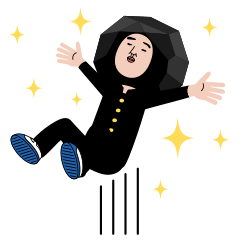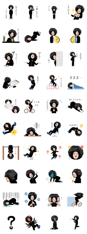 全身黒色のキャラが田川っぽくてよいです。田川を知る人はもちろん知らない人にも使ってほしいスタンプです。