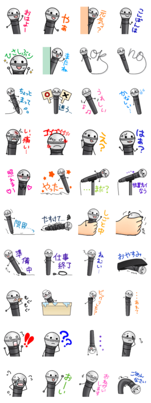 ライブを抜け出したマイクがスタンプになっちゃった!かわいいものからちょっと笑えるものまで。ライブやカラオケ好きなあなたに贈る、いつでも使える万能スタンプです。ほのぷー より発売