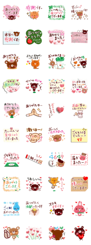 感謝やお礼を伝えたい時、何かいただいたりお世話になった時、嬉しい気持ちをすぐに伝えたい時などに、便利なスタンプです。様々な状況にあわせて使えます♪
