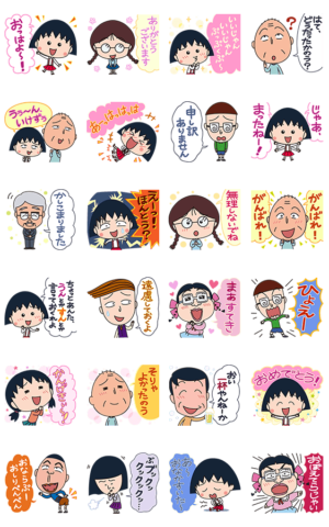ちびまる子ちゃんの喋るスタンプです。まるちゃん以外にも人気のキャラクターも多数いる可愛いスタンプです。
