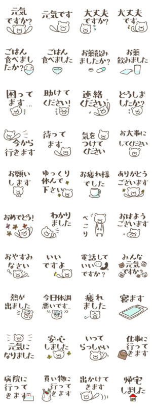 離れて暮らす、親、子供、夫4など家族へ送るシンプルなスタンプです。 探しやすく読みやすい大きめの文字で作りました。