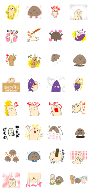 宮崎県都城市で愛される郷土菓子たちのスタンプです。ねったぼ、ふくれ菓子、ゆべしさん。Eri より発売