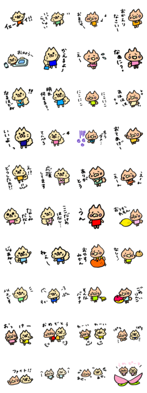 仲良しのモナカちゃんとパンちゃん。いつもお揃いの服を着ています。今回はモナカチャリティースタンプです。Mei より発売