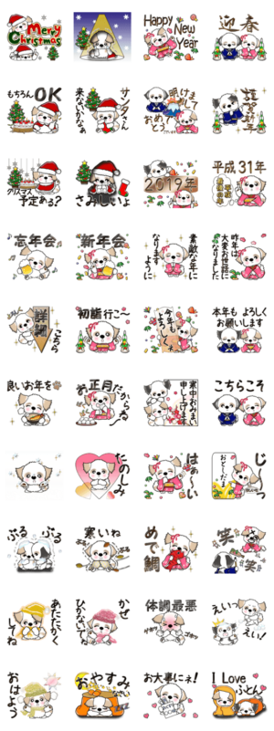 シーズーの冬(クリスマス、お正月) Vol.19 スタンプ情報