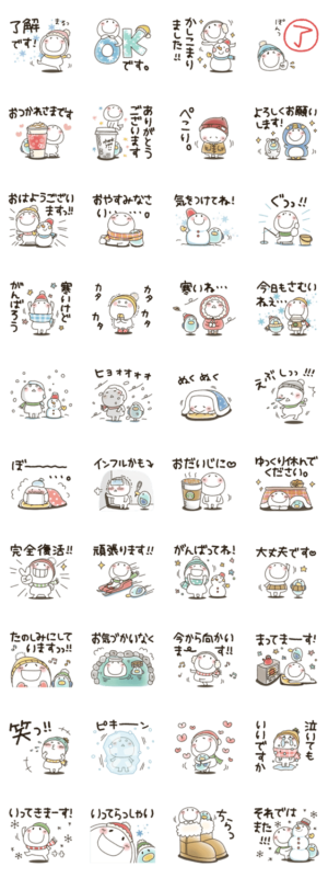 まるぴの第33弾です。だれもが笑顔になれるスマイルくんの、冬に使いやすいバージョンです。雪だるま、こたつ、ホットドリンクなど。