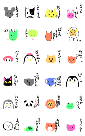 動物のスタンプ(文字入り)のダウンロードはこちら↓