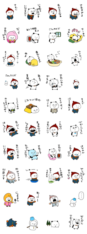 ごきげんぱんだ軍団の仲間をご紹介!「冬きちゃったぱんだ」冬です。さむいです。耳あてひとつでだいぶちがいます。しのぎましょう。
