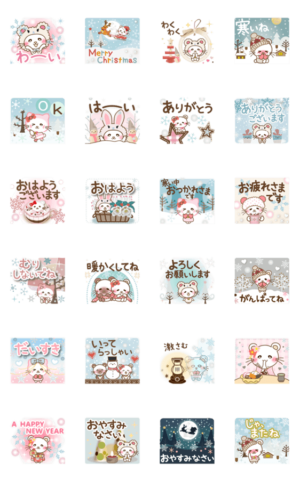 クリスマスからお正月に。そして冬の間、毎日使えるデザインになっています。くまやうさぎの着ぐるみを着たぱんにゃちゃんがキュートです♡
