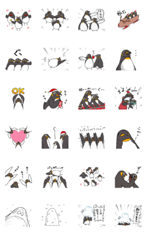 ハイテンション&超スピーディー!群れを成したキュートなぺんぎんのスタンプ第4弾!クセになる激しいリアクションとシュールな無表情で、寒い冬も元気に面白く煽ります!guji より発売