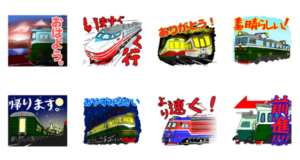 昔日本を走っていたような、どこか懐かしいレトロなデザインをした電車のスタンプです。もしかしたら、同じような電車が今日もどこかを走り回っているかもしれませんよ…?ますよし より発売