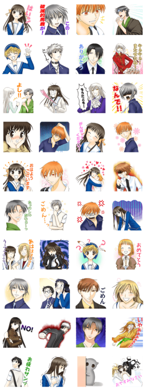 大ヒット少女漫画「フルーツバスケット」のスタンプがついに登場!透、由希、夾をはじめとした草摩家の面々の表情豊かなスタンプで気持ちを伝えよう!