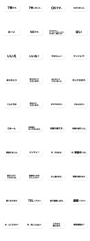 めんどうな文字打ち不要で、選ぶだけ。大きさもみやすく、選びやすい。若い人からお母さん、大人、シニア、仕事まで誰でも使える。シンプルな吹き出し文字だけ、文字のみ。