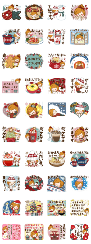 寒い冬にぴったりな、大人かわいい冬スタンプです♪クリスマスも年末年始のご挨拶もこれでばっちり☆すてきな冬をお過ごしください☆「ほのぼのカノジョ」シリーズ