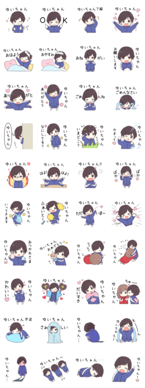 【ゆいちゃん】に送る専用のジャージくんスタンプ第1弾です。大好きな「ゆいちゃん」に呼びかけます。