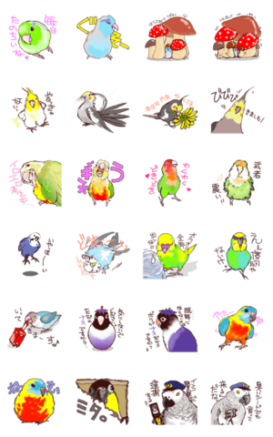 ますます楽しいインコスタンプ。ナスボタンインコや、インコ警察も登場!ここっとさん より発売