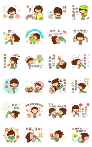 Yoga girls prepare winter. Greetings of Chinese New Year & frequently used words. yoga, pilates sometimes relax. Traditional Chinese.