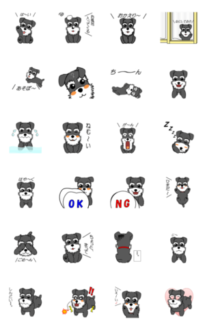 シュナウザーが可愛く動くスタンプです。フワマル より発売