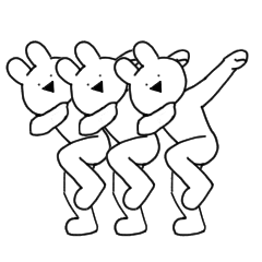 『すこぶる動くウサギ』のダンサブルでコミカルなハイテンションスタンプ!激しくぬるぬるなダンスでリアクションを強烈に表現しよう!日常会話・JK語、便利な言葉を網羅♪株式会社DK より発売