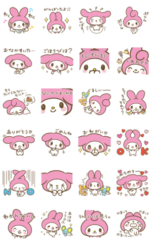 お菓子をみるとし・あ・わ・せ♪くいしんぼ系乙女なマイメロディの、アニメスタンプが登場!ぽちゃめろなうごきで、みんなを更にメロメロにしちゃうよ~♪