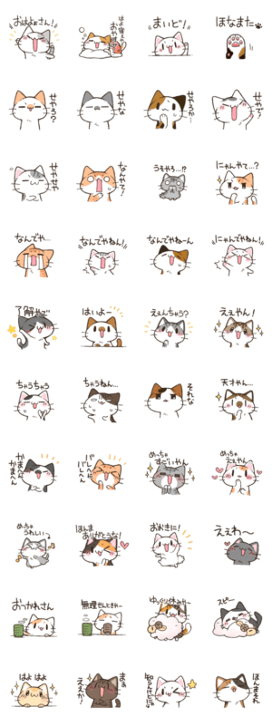 ふんわり愛くるしいにゃんこ達の関西弁スタンプ第二弾!日常にも恋愛にもおススメです!りくお より発売