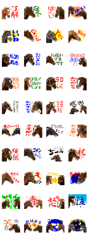 馬、ウマ、うま。競馬大好き。運気上昇。毎日使えるスタンプに。幸福招来。