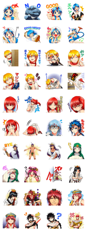 魔法飛び交う大人気冒険譚『マギ』がスタンプに登場! ダンジョンに眠る宝とその秘めた力を巡る、少年アラジンと仲間たちの表情豊かなマジカルスタンプ40種類!小学館 より発売