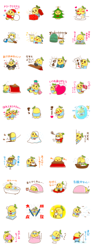 2000年に1度現れる千葉県船橋市の梨の妖精「ふなっしー」!今回は冬スタンプに登場!!みんな冬もハシャギまくるふなっしーをたくさん使ってなっしー♪ヒャッハー!(株)アップライト より発売