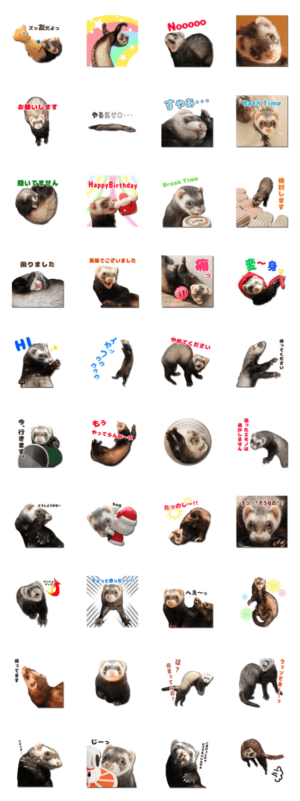 フェレットがおもしろ可愛く日常&感情を表現する第二弾です。アニマルスタンプMM より発売