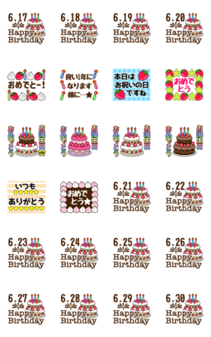 祝いたい生まれ月を入れて【まつこの◯月お祝い】で検索。6月17日〜30日お誕生日を祝うスタンプ/ハッピーバースデー/happy birthday cake/ケーキ/に贈る/送る/動くMatsuko2016.11 より発売
