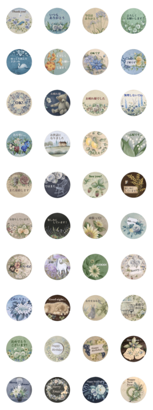 トールペイント の作品をスタンプにしました。大切なあの人へ送る言葉にはいつだって優しい気持ちが詰まっているはず。素敵な大人の女性にぜひ使って欲しいスタンプです。