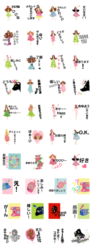 気持ちを伝えるフラダンス大好きなガールズ スタンプ画像一覧
