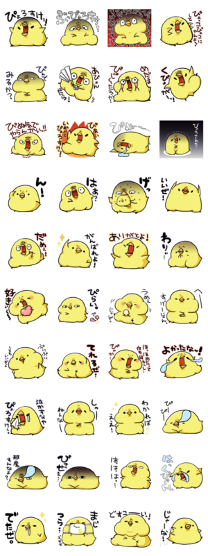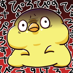 漫画「未知なるヒヨコ」のキャラクター”ぴょろすけ”のスタンプ。可愛いけど、ちょっと凄みあるヒヨコです。あすか より発売