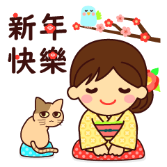 This Stickeris a women who works hard and everyday life of a cat. Wife, mother, to all domestic woman. Kimono lover, to the greeting of New Year 's greetings.
