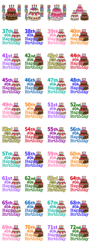 37〜72歳お誕生日お祝い1年毎に違うカラー スタンプ画像一覧