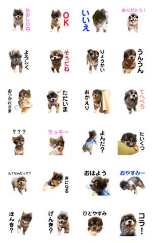 元気いっぱいのシニア犬、ブルータンチワワのトロンのスタンプです。ふあふあ より発売