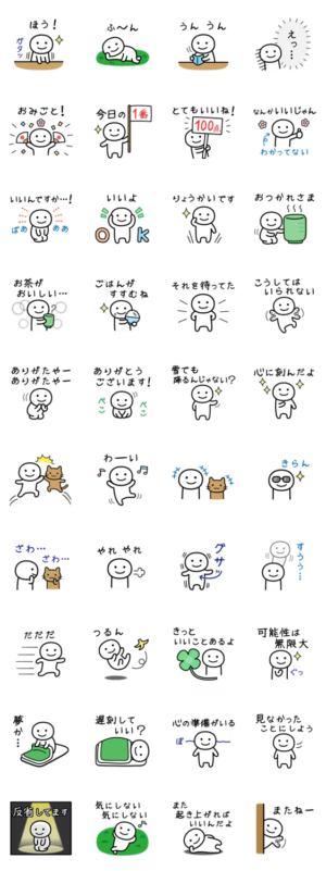 自分にも相手にも、ちょっと甘い所があるスタンプの第10弾です。今回は、様々なリアクションを楽しみます。仲良しのねこも一緒です。