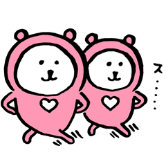 ピンクタイツのくまカップルがいます。らぶらぶなシーンが多く、恋人同士の会話に最適です。よしゃよしゃと慰めるくまがお気に入りです。