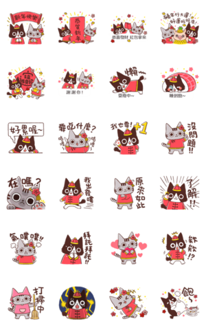可愛い猫 "以太 & みみ"の春節年賀スタンプです、ぜひ使ってみて下さい!kappacha より発売