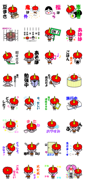 日常会話と節分のスタンプをチビ鬼君で作成しました。RYOOOOO より発売