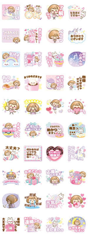 ゆめかわいいパステル系の優しいスタンプです。日常言葉はもちろん思いやりや相手への気づかいがグッとつまっています。大切な方とのトークをかわいく癒してくださいね〜♪